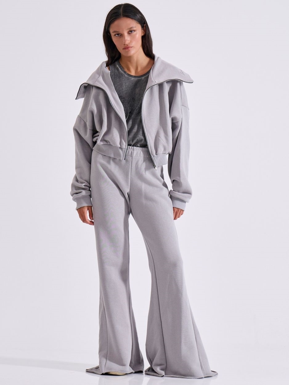 LIBELLOULA - Grey flared sweatpants decorated with metal LB MILLER