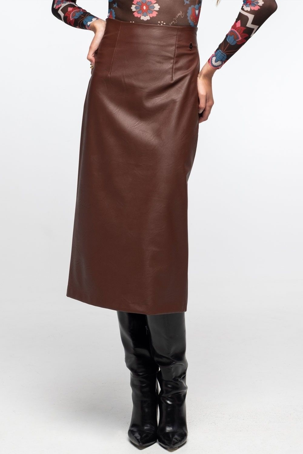 Peace And Chaos Liquorice Midi Skirt - Eco Leather (Brown)