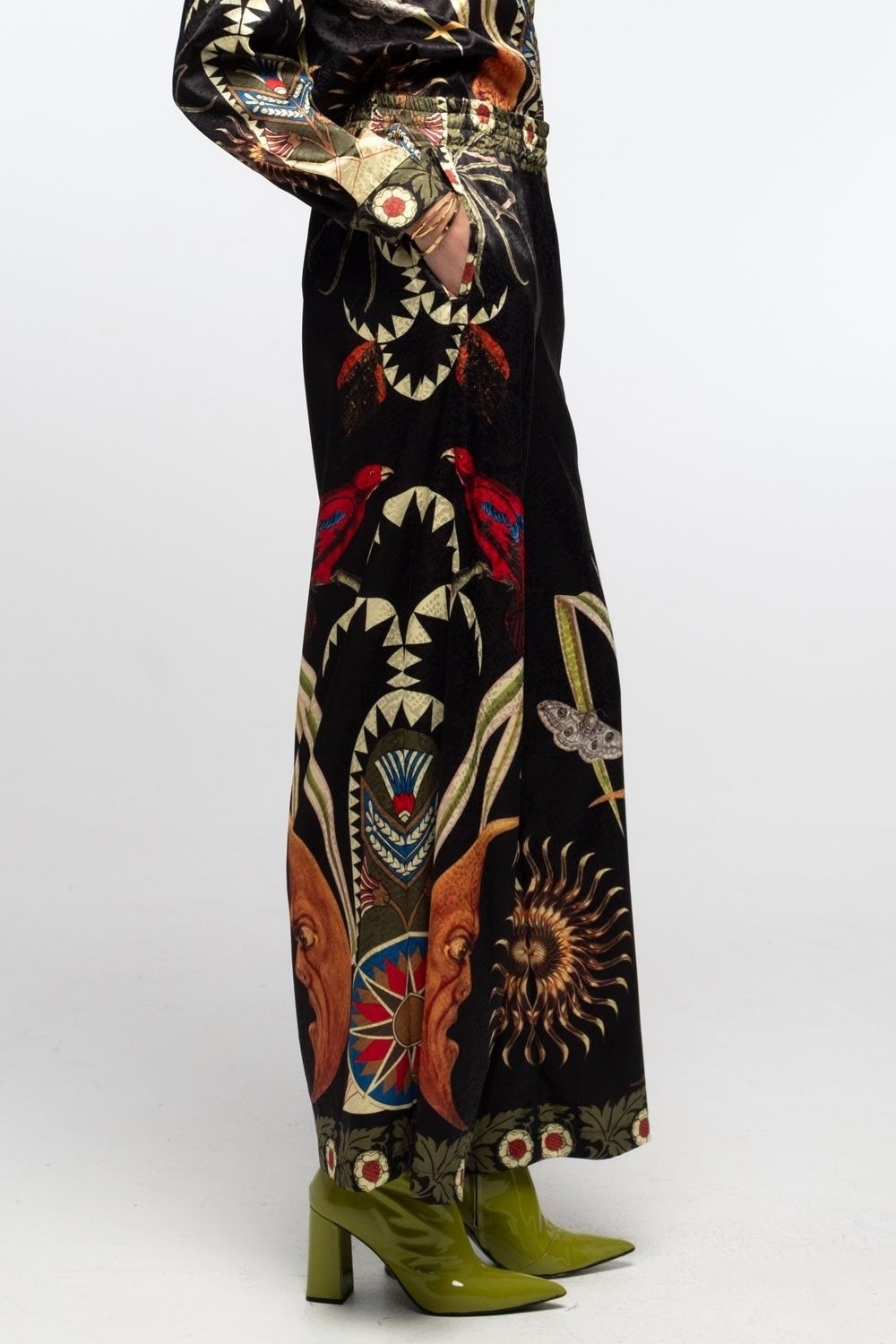 Satin jacquard printed pants with python woven pattern