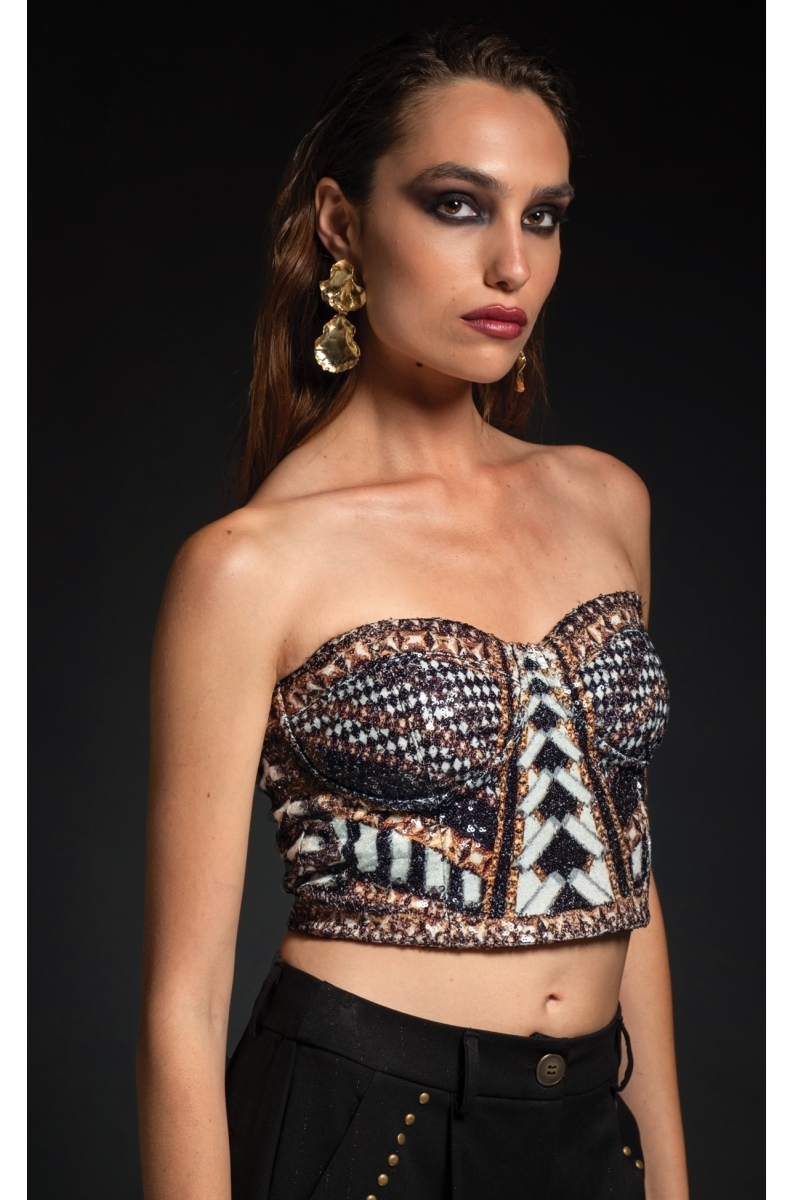 Model’s measurements height: 177 bust: 82 waist: 60 cmThe model wears small-medium