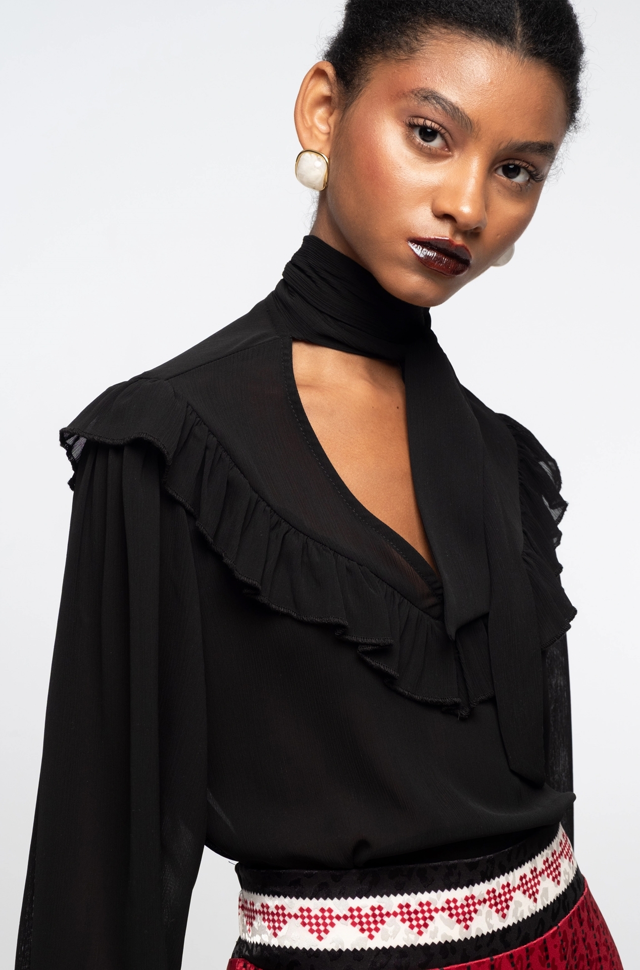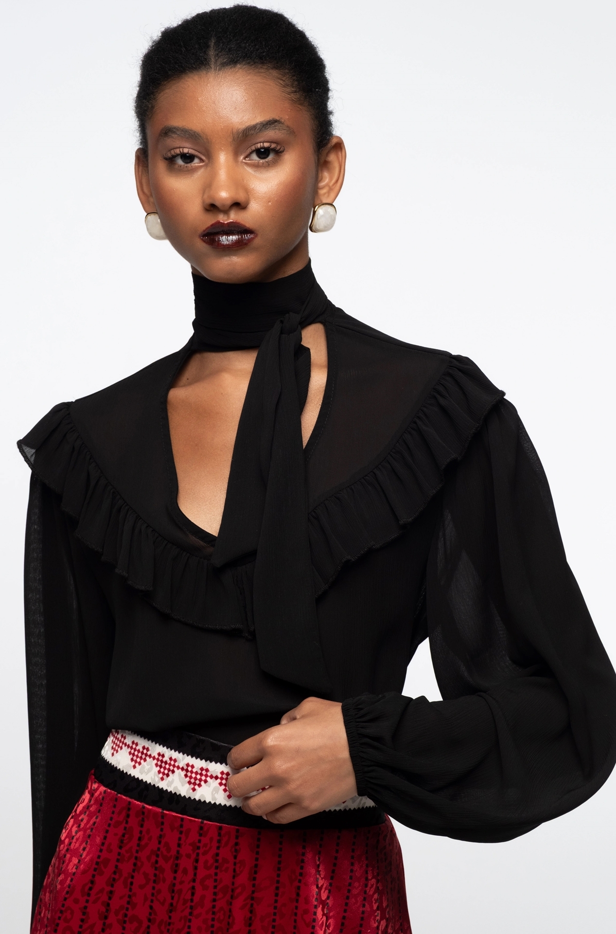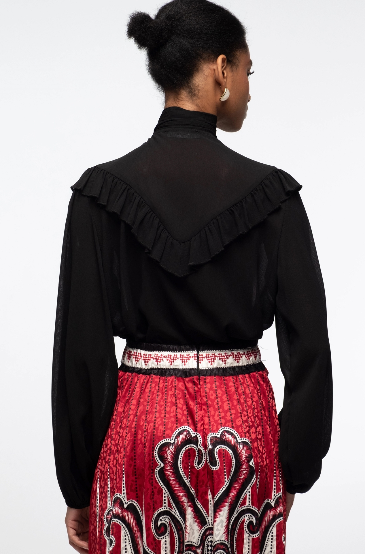 Our Alchemy Long Skirt features a sophisticated red, black and ecru placement print and the subtle shimmer of leopard satin jacquard. This A-line skirt sits high on the waist with a smooth waistband, invisible zip and elastic band at the center back for a sleek fit. Wear yours with a matching Alchemy Shirt or a Copper Top in black for refined yet free-spirited vibes.